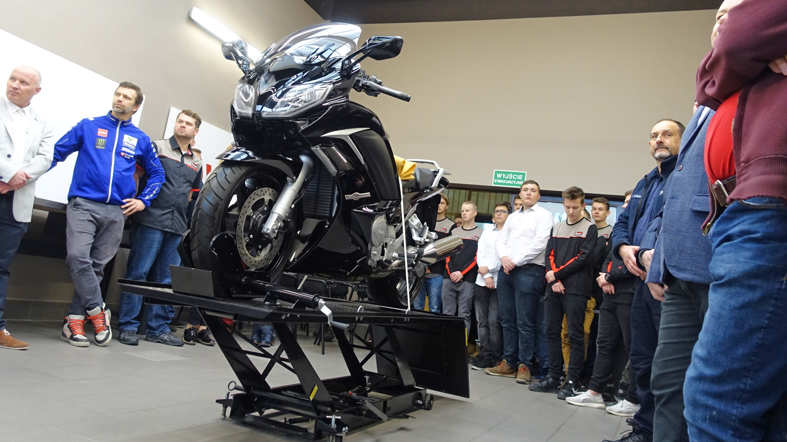 „To dla mnie bardzo ważna chwila. Dzięki pomocy pana dyrektora mgr. inż. Piotra Zająca oraz nauczyciela prowadzącego klasę, pana Piotra Kuligowskiego udało nam się stworzyć klasę o profilu mechanika motocyklowego, w której możemy kształcić do zawodu kilkudziesięciu uczniów. To właśnie ta młodzież ma szanse w przyszłości pracować w naszych serwisach, zapewniając najwyższy poziom obsługi klientów Yamahy” – podsumował ceremonię Piotr Piszcz, dyrektor obsługi posprzedażnej Yamaha Motor Europe – Oddział w Polsce.
