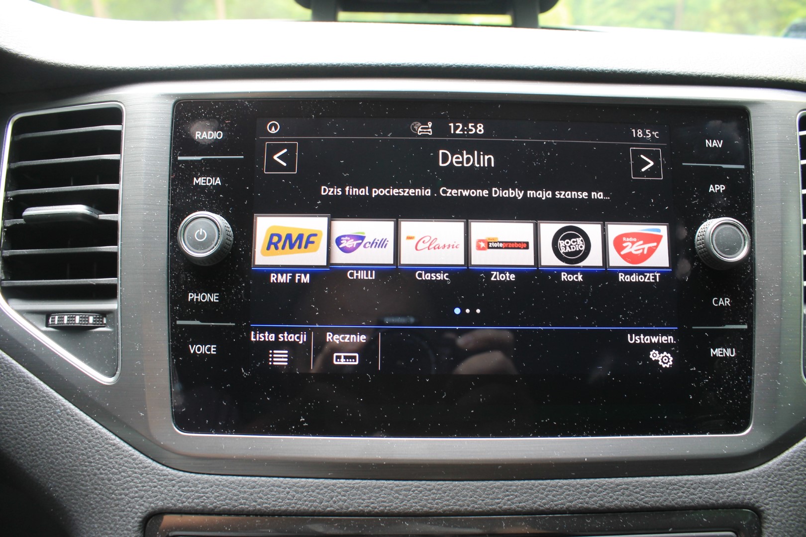 Same elementy systemu multimedialnego raczej niestety nie zachwycają i wydają się przestarzałe. Kamera cofania była zaskakująco niskiej rozdzielczości, nie wskazywała także przewidywanego toru jazdy (co jest już standardem nawet w samochodach niższych segmentów), dodatkowym irytującym elementem był każdorazowo bardzo głośny zgrzyt mechanizmu odkrywającego kamerę (ukryte w logo VW na klapie). System nagłośnienia pozostawiał wiele do życzenia w kwestii jakości dźwięku, czy zasięgu radia, a nawigacja wbudowana była zaskakująco uboga i miejscami nieaktualna. Zaczyna być widać, że VW zmierza w kierunku przeniesienia środka ciężkości multimediów na telefony komórkowe (Apple Car i Android Auto… przy czym to ostatnie nie jest oficjalnie wspierane w Polsce).